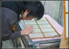 福祉作業所に、刈り取った葦と紙パックを使った紙すき・製紙作業を依頼します。